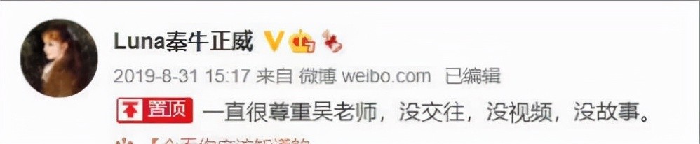 于是乎2019年8月31日的一则秦牛正威的微博称:“一直很尊重吴老师,没交往,没视频,没故事"。