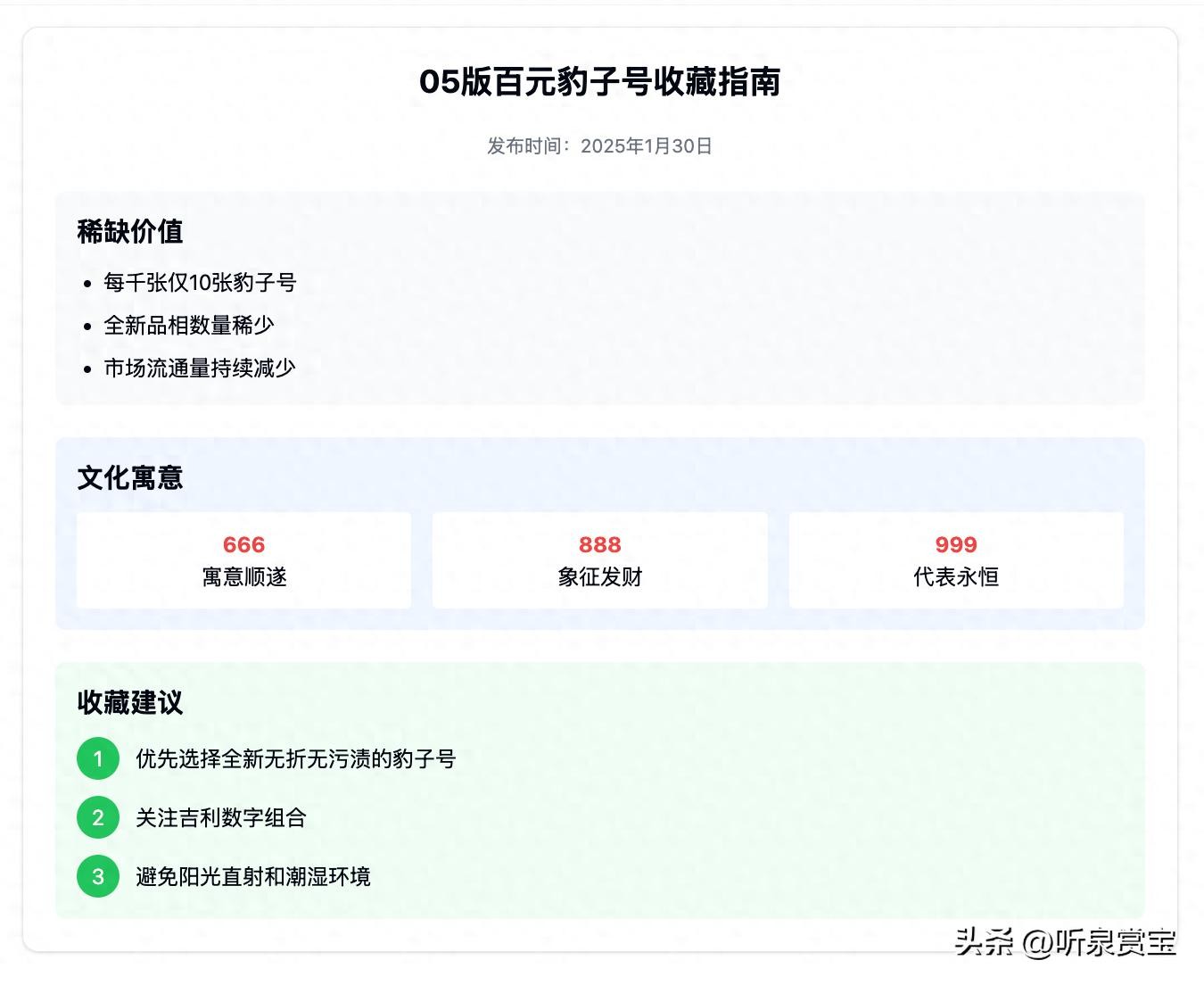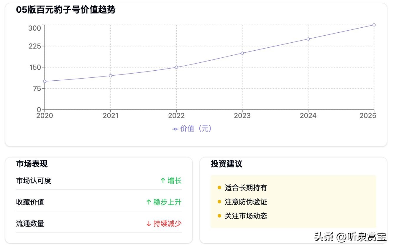 人民币收藏市场近年热度不减,05版百元豹子号凭借独特魅力备受关注。