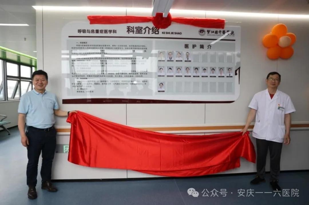 签约揭牌仪式结束后,一行人前往望江中医医院呼吸与危重症医学科进行科室开诊揭牌,并进行了参观、指导。